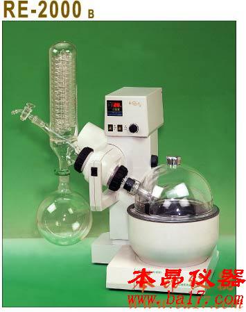 RE-2000B旋轉蒸發器標準口冷凝管 電子無級調速20-200轉/分 功率:40W蹺板式按鍵 快速自動升降 0-150mm 特氟隆復合鍋 全封閉加熱器 功率1.4Kw全透明保溫、節能、防爆、防污罩 溫度自動控制 數字顯示水溫 室溫-90℃。
