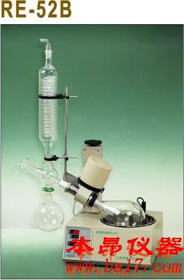 RE-52B旋轉蒸發器薄膜輕觸,自動升降,溫度智能數顯,轉速數顯。采用旋轉蒸發瓶(燒瓶),增大蒸發面積在減壓下置于水浴中一邊旋轉,一邊加熱的裝置,使瓶內溶液擴散蒸發。